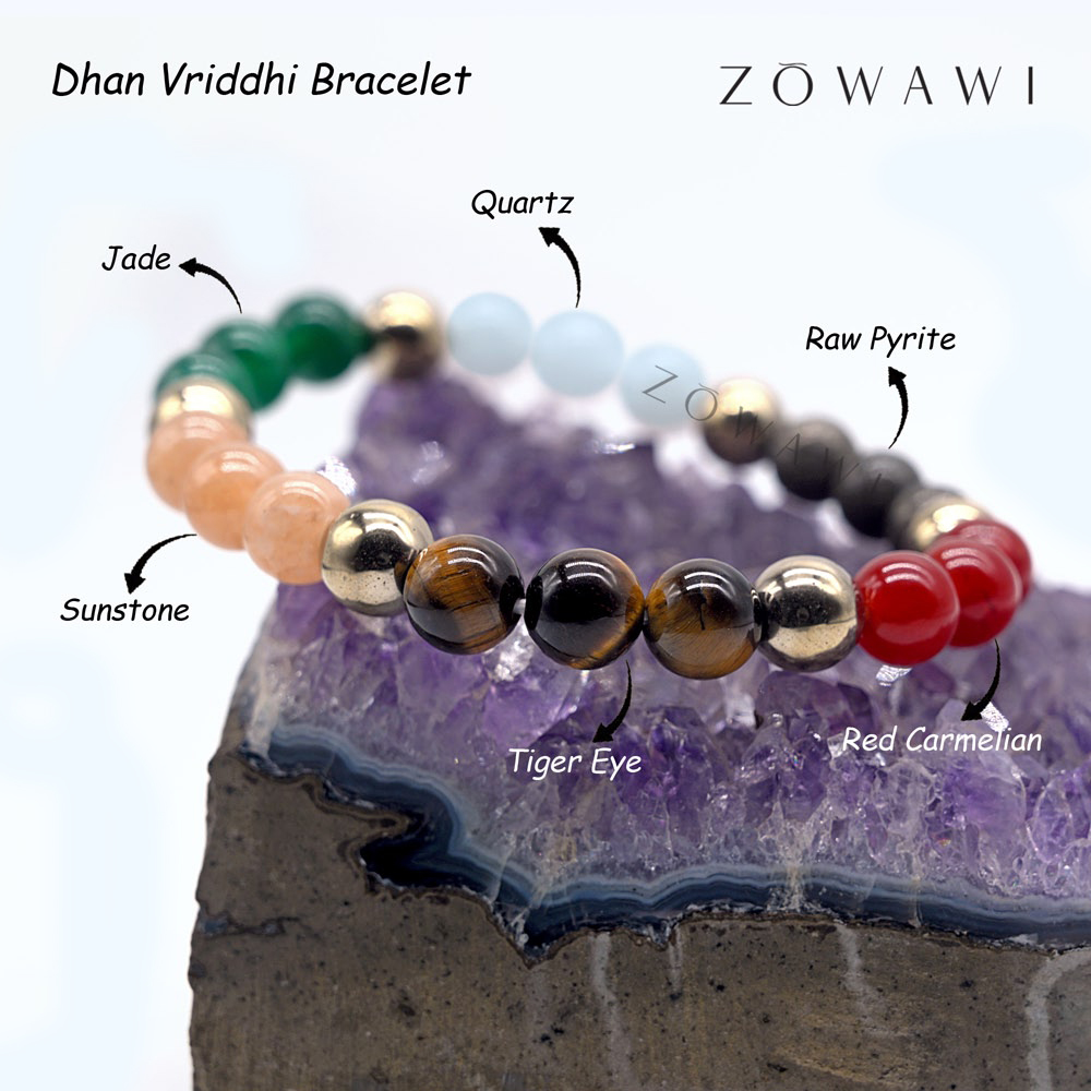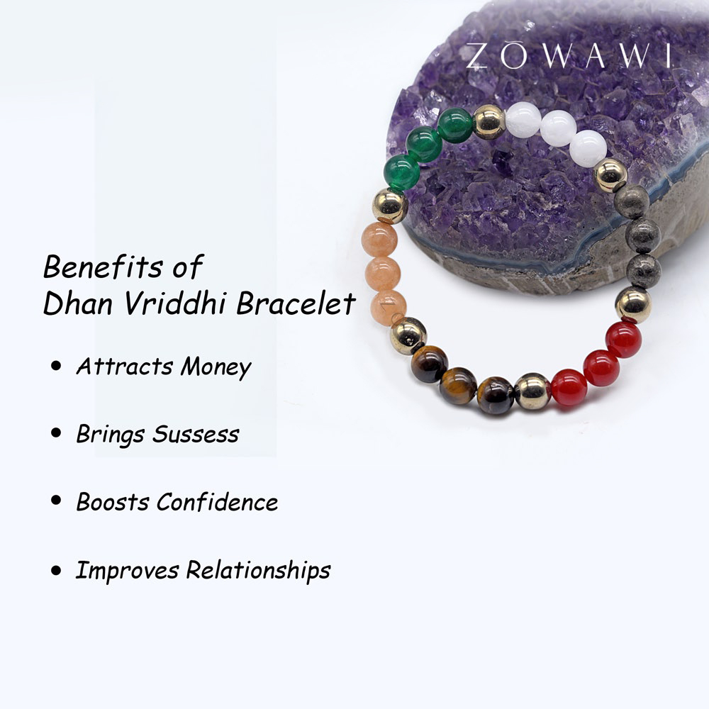 The bracelet is designed to attract prosperity, increase income flow, and support long-term financial stability. It’s often used to invite continuous wealth and positive opportunities in business or career.Removes money blockages