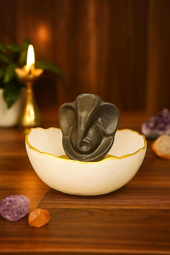 When placed inside or near a Selenite money bowl, the Pyrite Ganesha’s wealth-attracting energy is magnified—like putting your financial intentions under a spiritual spotlight.